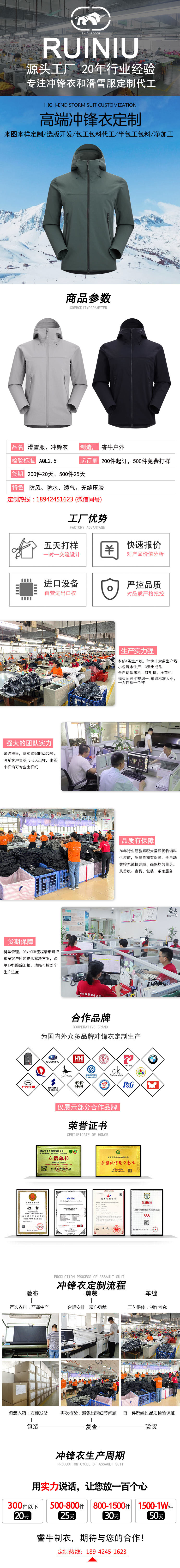 沖鋒衣工廠來圖來樣定制加工硬殼沖鋒衣