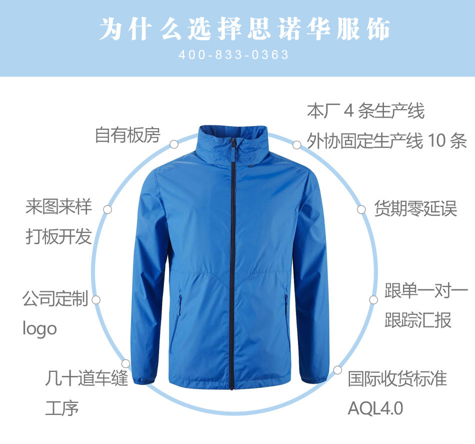 拉鏈口袋:團體風衣定制其兩側特有的口袋拉鏈設計,安全性高,防止物品外露或丟失。