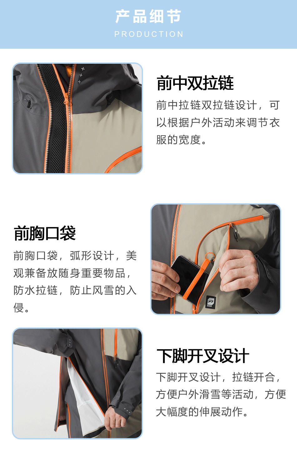 【下腳開叉設(shè)計(jì)】拉鏈拉合,方便戶外滑雪等戶外活動(dòng)而需要的大幅度動(dòng)作